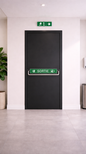 Idéale pour les bâtiments professionnels, hôpitaux, parkings, locaux techniques et zones industrielles, elle allie robustesse, résistance intensive et esthétique moderne. Disponible en 1 vantail ou 2 vantaux, avec finition noir mat ou autres coloris sur demande.